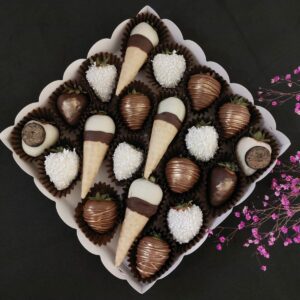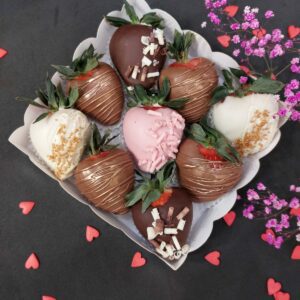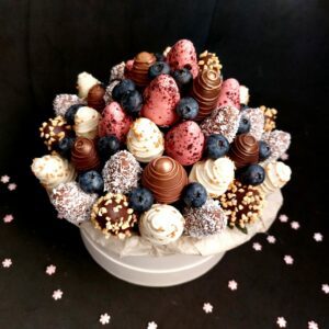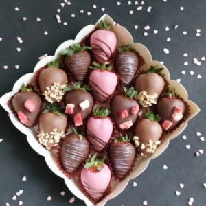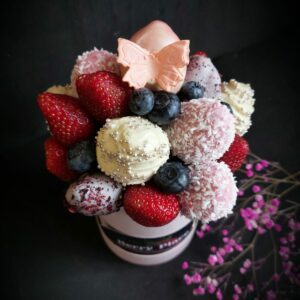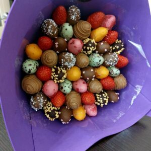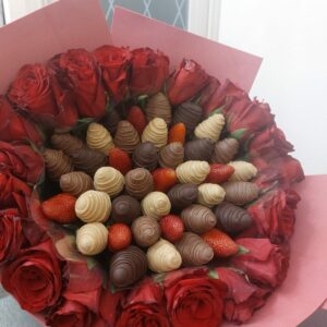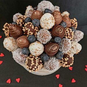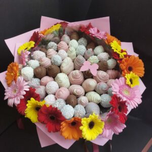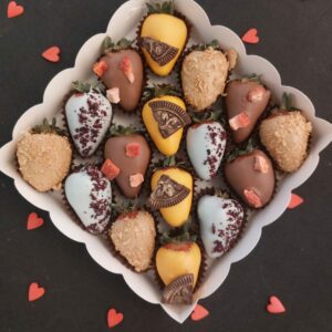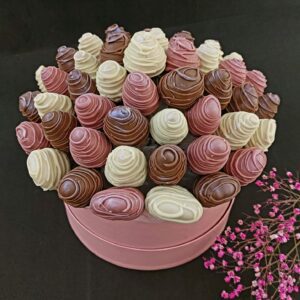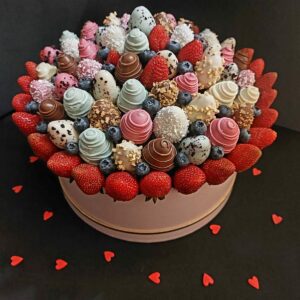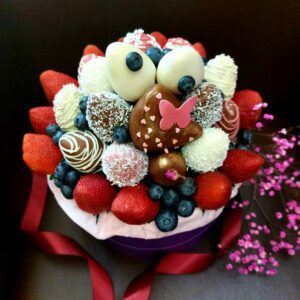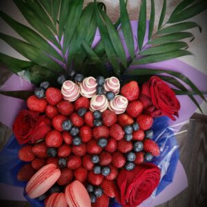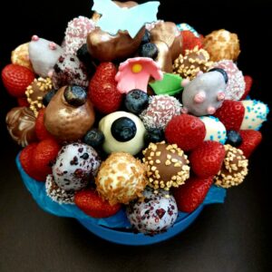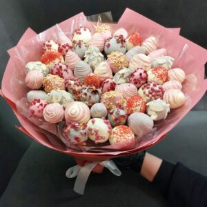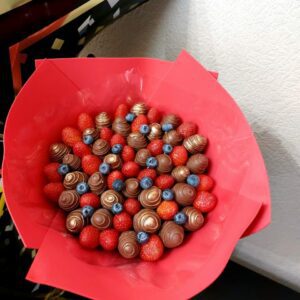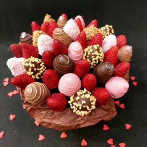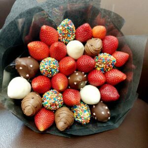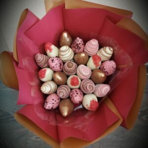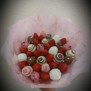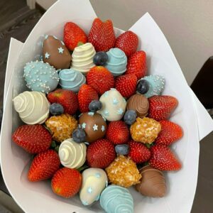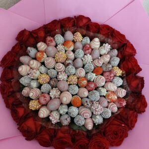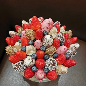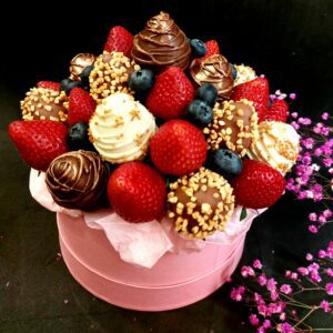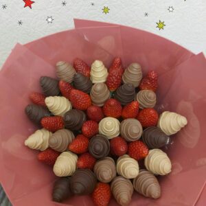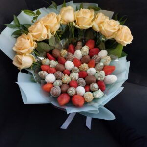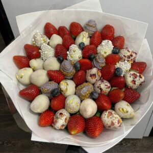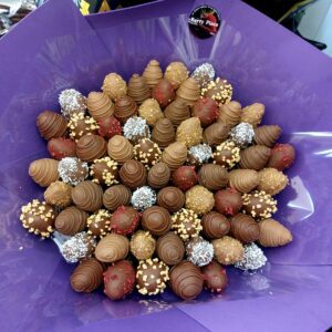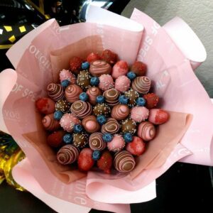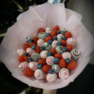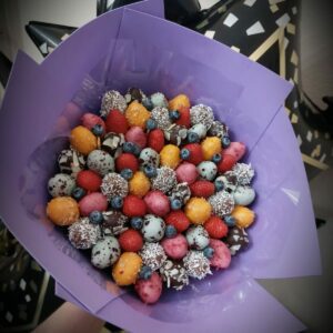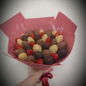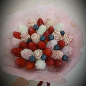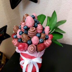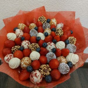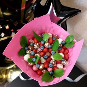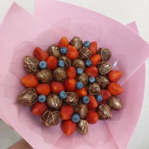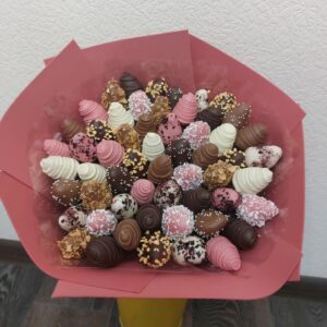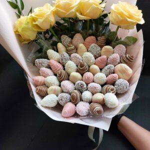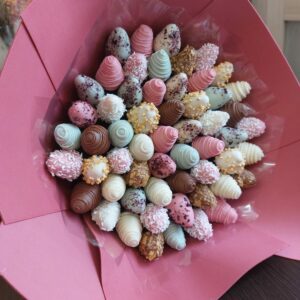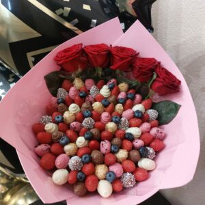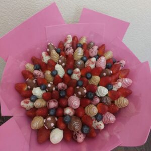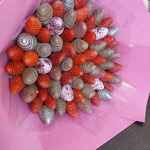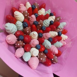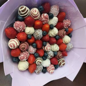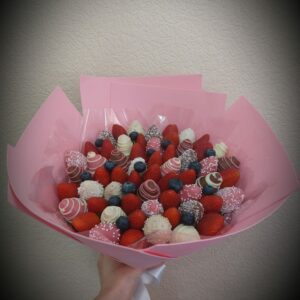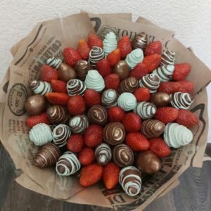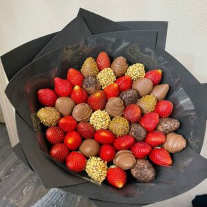 Букет из клубники в шоколаде — не просто красивый съедобный букет, а настоящее произведение искусства, которое точно порадует вашу вторую половинку. В нашем ассортименте есть букеты с добавлением свежих ягод, а также натуральных цветов.