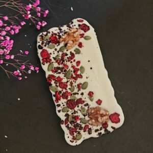 Изделия ручной работы из натурального шоколада с сублимированными ягодами и орехами для настоящих гурманов.