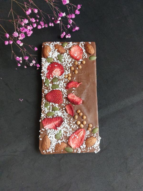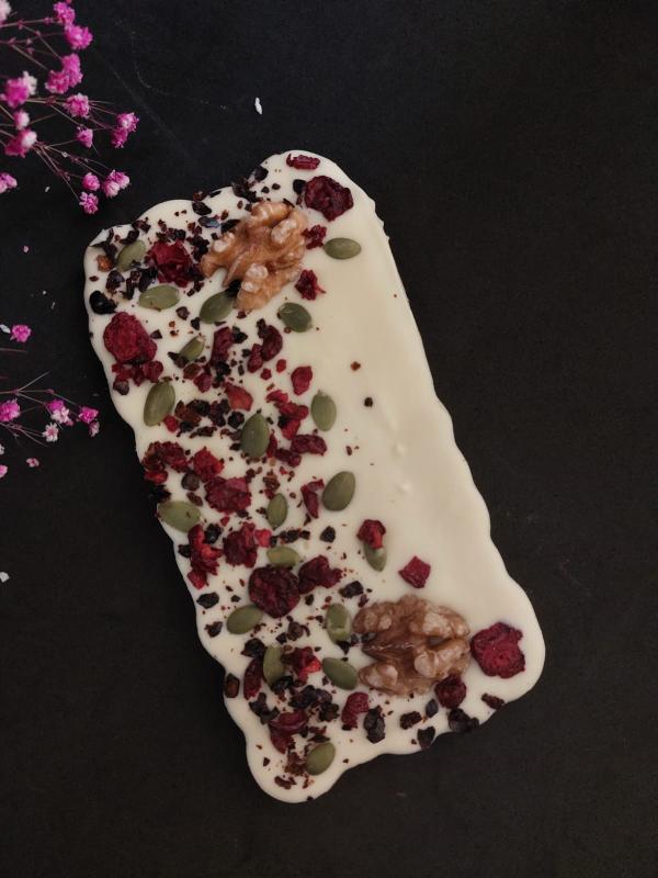 Изделия ручной работы из натурального шоколада с сублимированными ягодами и орехами для настоящих гурманов.