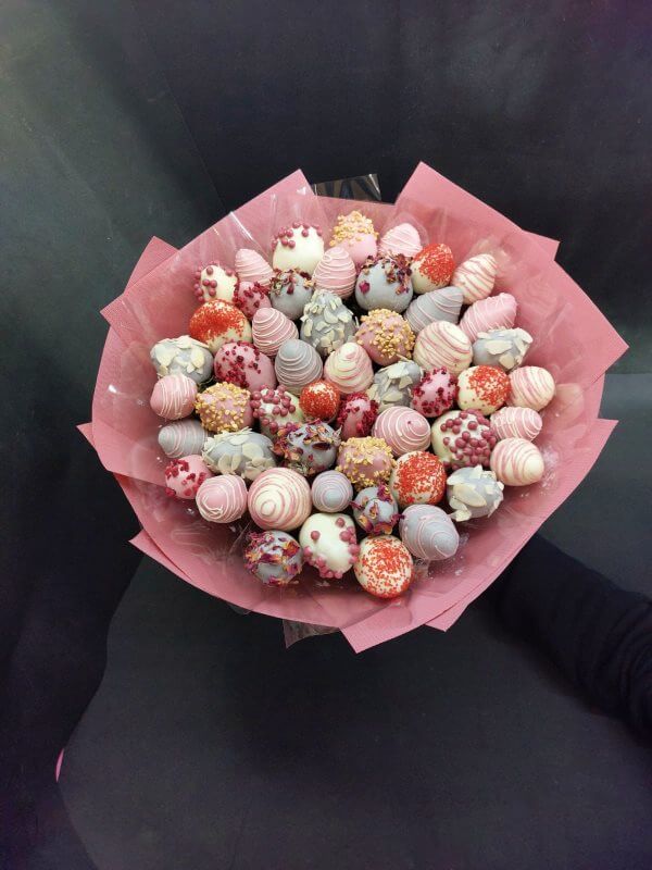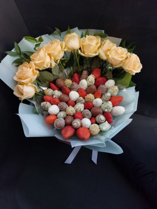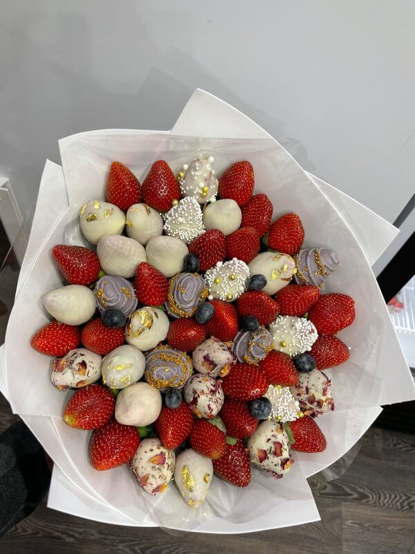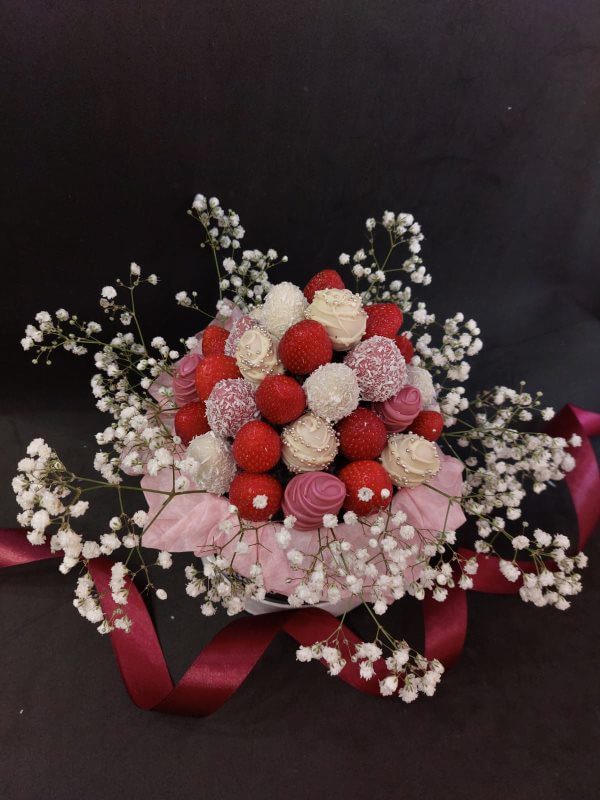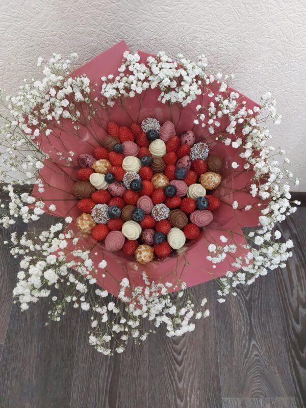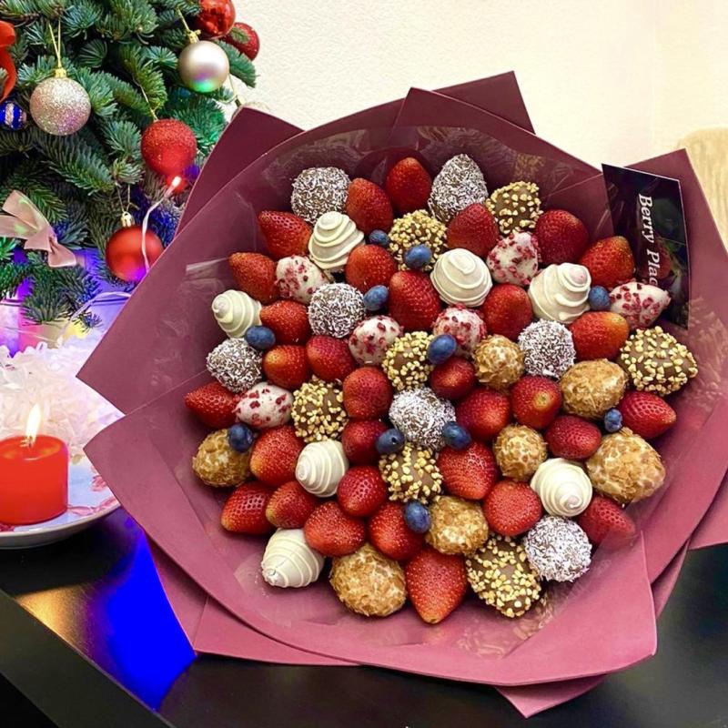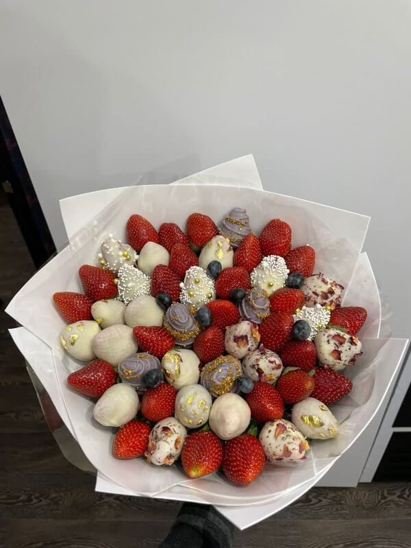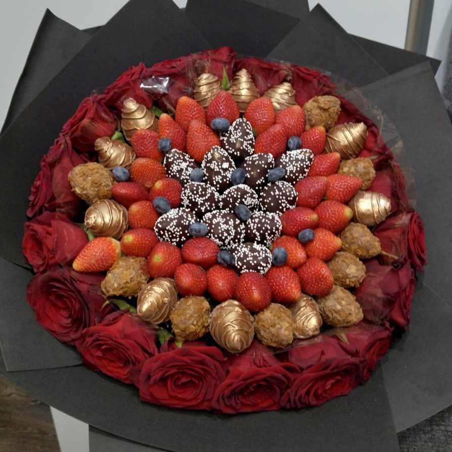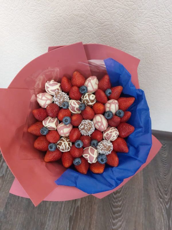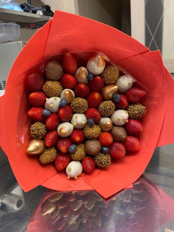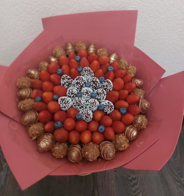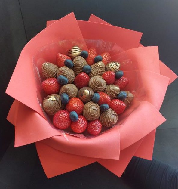 Букет из клубники в шоколаде — не просто красивый съедобный букет, а настоящее произведение искусства, которое точно порадует вашу вторую половинку. В нашем ассортименте есть букеты с добавлением свежих ягод, а также натуральных цветов.