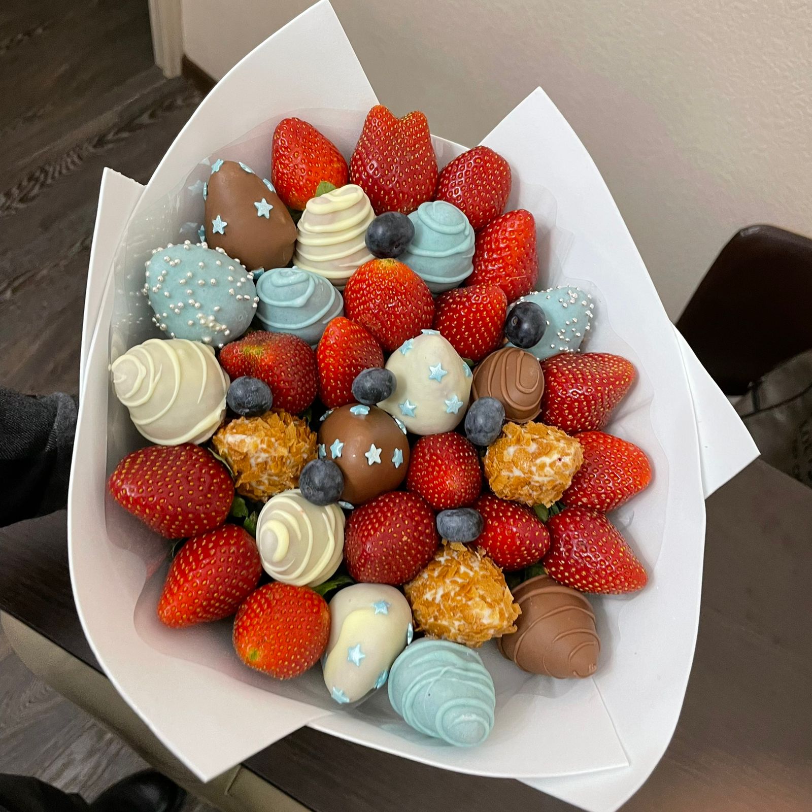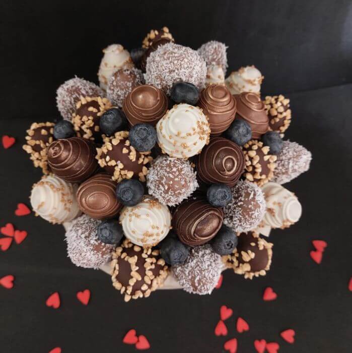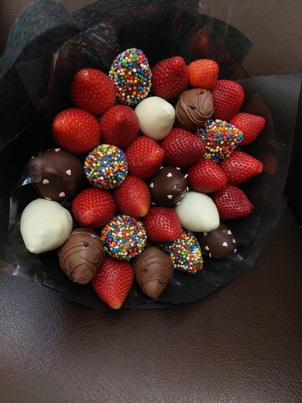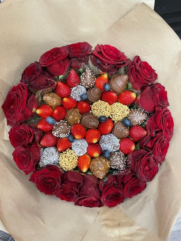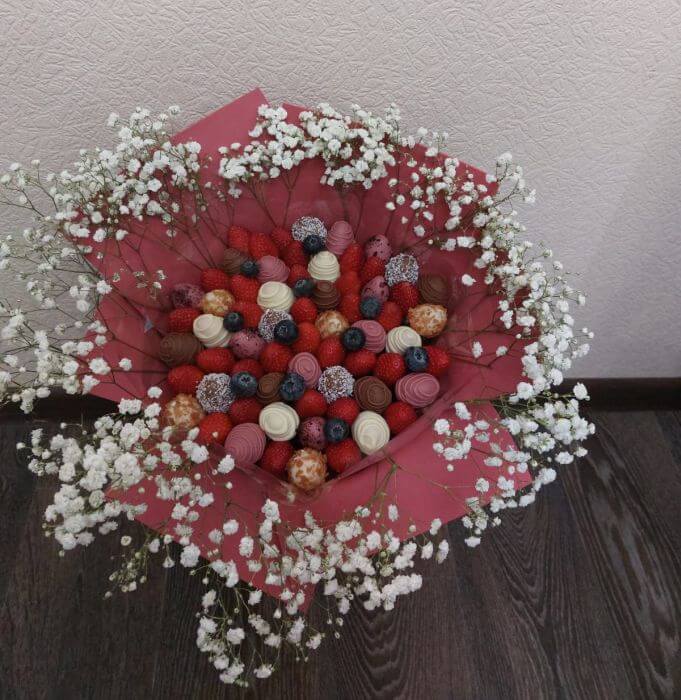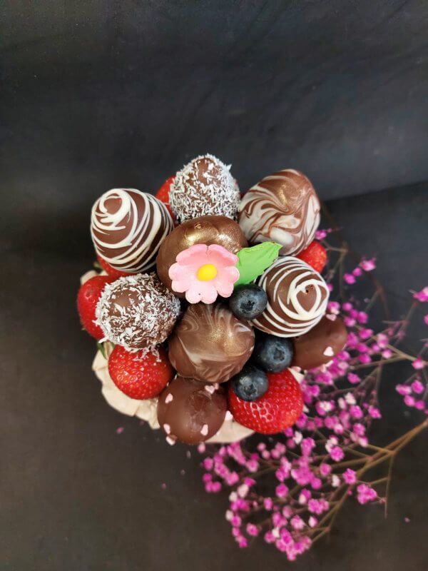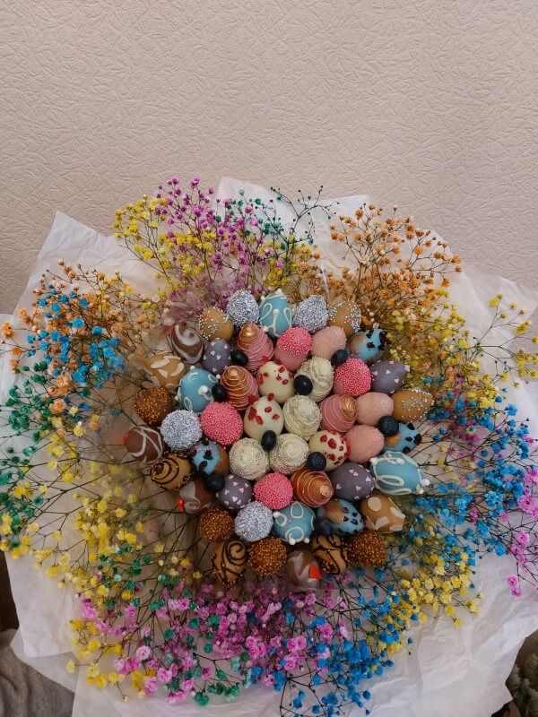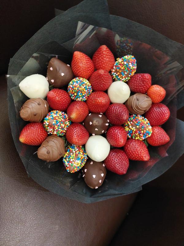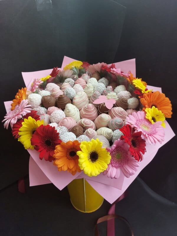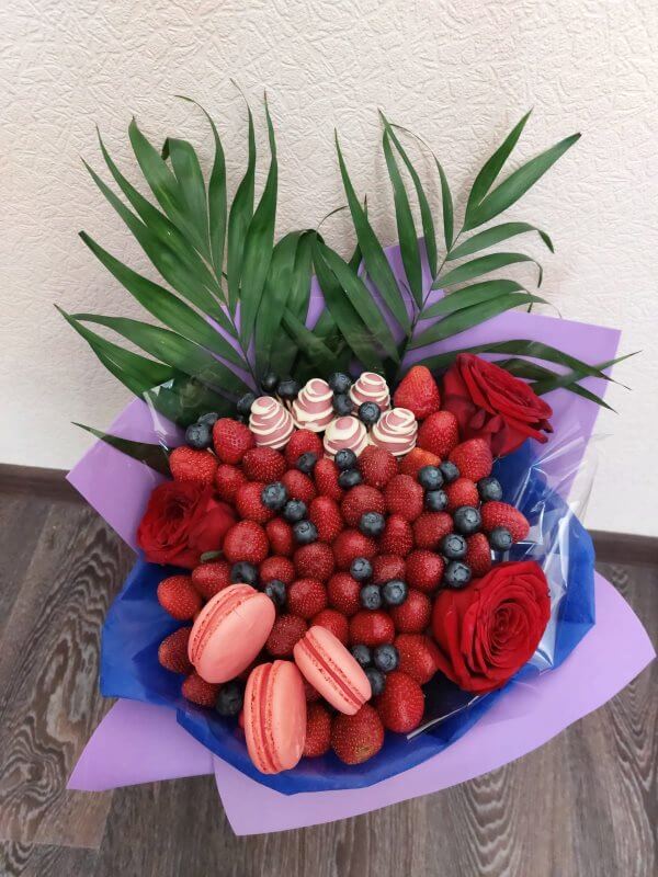 Букет из клубники в шоколаде — не просто красивый съедобный букет, а настоящее произведение искусства, которое точно порадует вашу вторую половинку. В нашем ассортименте есть букеты с добавлением свежих ягод, а также натуральных цветов.