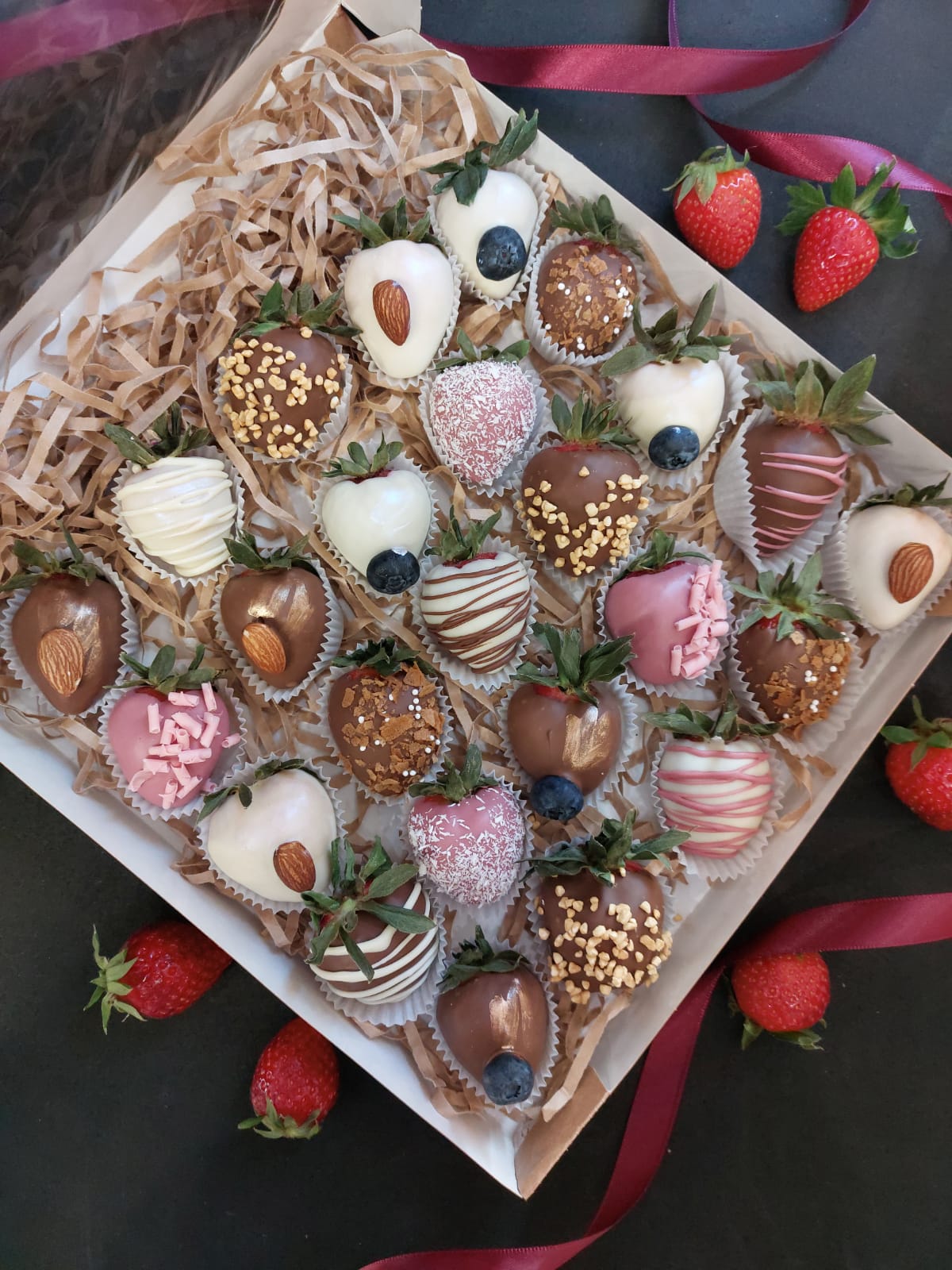 Клубника свежая отборная в бельгийском шоколаде callebaut молочном, розовом, белом.