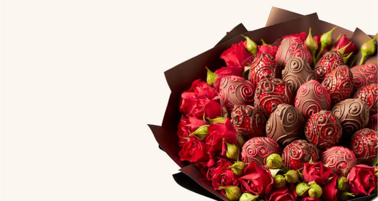 Состав Розы 19шт. Клубника 700гр. Шоколад 130-180г...